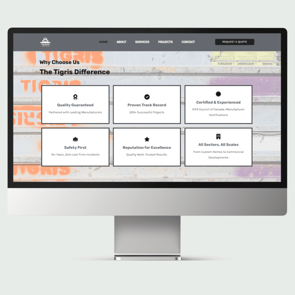Tigris Construction is an established construction company with years of experience across residential and commercial projects. While the business itself had grown and built a strong reputation, the existing website no longer reflected that level of professionalism — creating a significant disconnect between the work they deliver and how they appeared online.